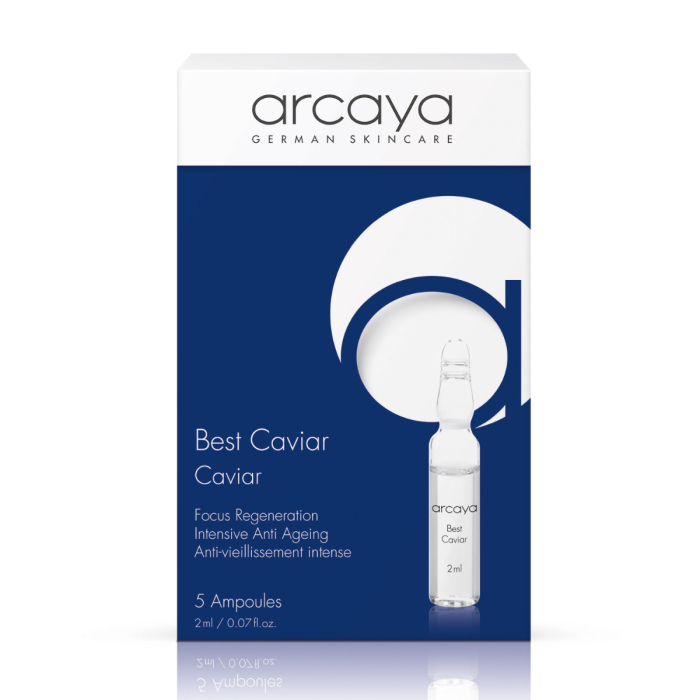 Wichtige Wirkstoffe: Kaviar Extrakt (vom Stör –gewonnen unter Einhaltung der internationalen Artenschutzbestimmungen), Grüne Bohnensamen Extrakt. Mehr Informationen zu unseren Inhaltsstoffen finden Sie hier: arcaya.de/ampullen-wirkstofftabelle